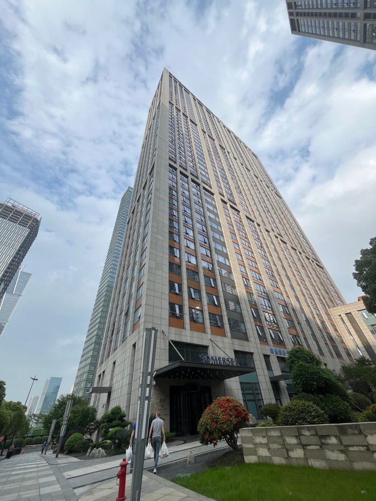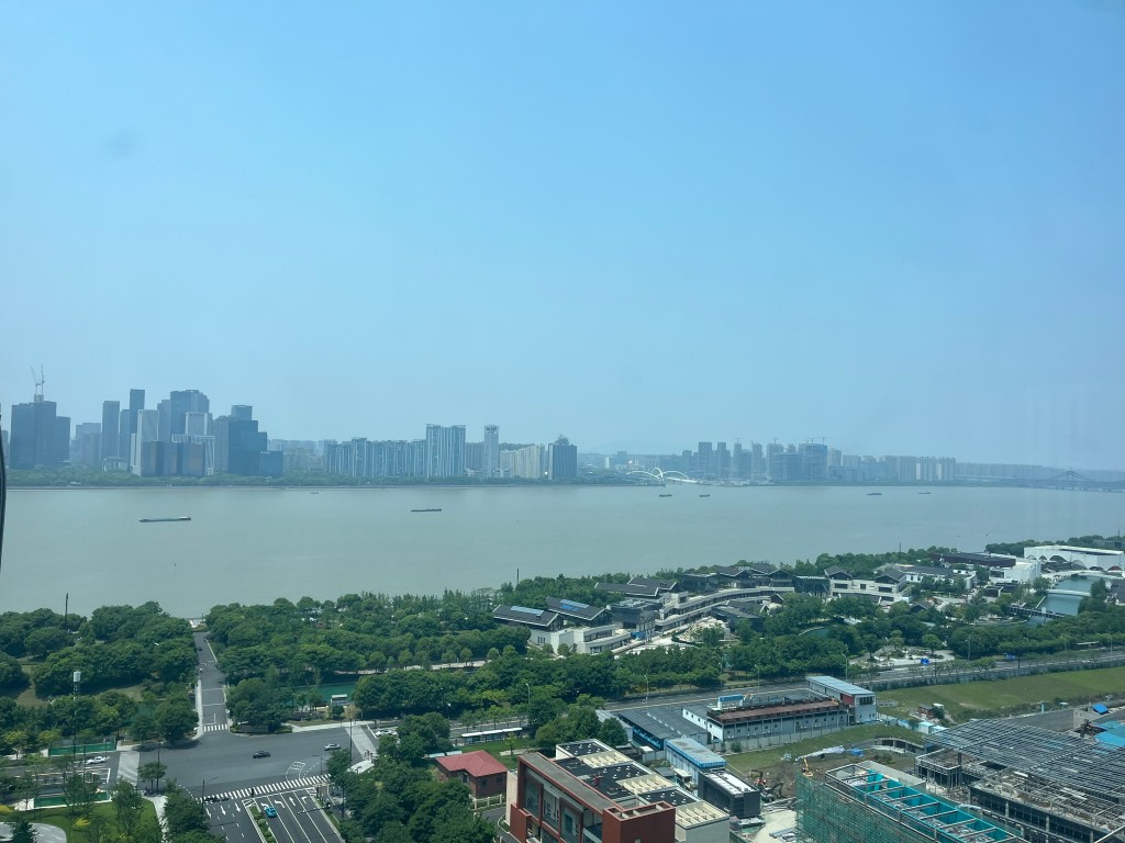 Na een lange rij bij de douane, het ophalen van onze koffers en het aanmelden van de air shipment (deze komt later aan), stond onze taxi klaar met het bordje: VERHAREN. Dus daar gingen we, nog een kleine 3 uur rijden naar Hangzhou! Van Shanghai naar Hangzhou zie je onderweg vooral veel rijen met hoge appartementengebouwen die dicht op elkaar staan. Maar ook rijd je langs een elektriciteitscentrale die aan de rand van Shanghai staat, naast de snelweg. Dat is toch wel een bijzonder gezicht, zo dicht bij de weg en stad. Ondanks de extra stoel hadden we beide erg weinig kunnen slapen in het vliegtuig en het voelde nog steeds als midden in de nacht. In de taxi vielen we dan ook snel in slaap.