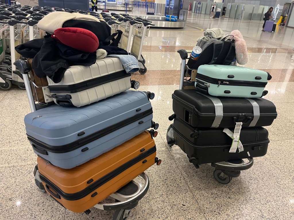 Ondanks dat het meivakantie was, verliep alles heel soepel op Schiphol. Ook het inchecken van onze koffers verliep uiteindelijk zonder bij te betalen, nadat we voor de zoveelste keer spullen hadden verwisseld zodat het gewicht zou kloppen. Wel liepen we de rest van de tijd op Schiphol rond met één losse schoen en 3 jassen, want met de schoen zou de koffer toch net te zwaar zijn, haha. Deze schoen en jassen pasten ook niet meer in onze handbagage.
