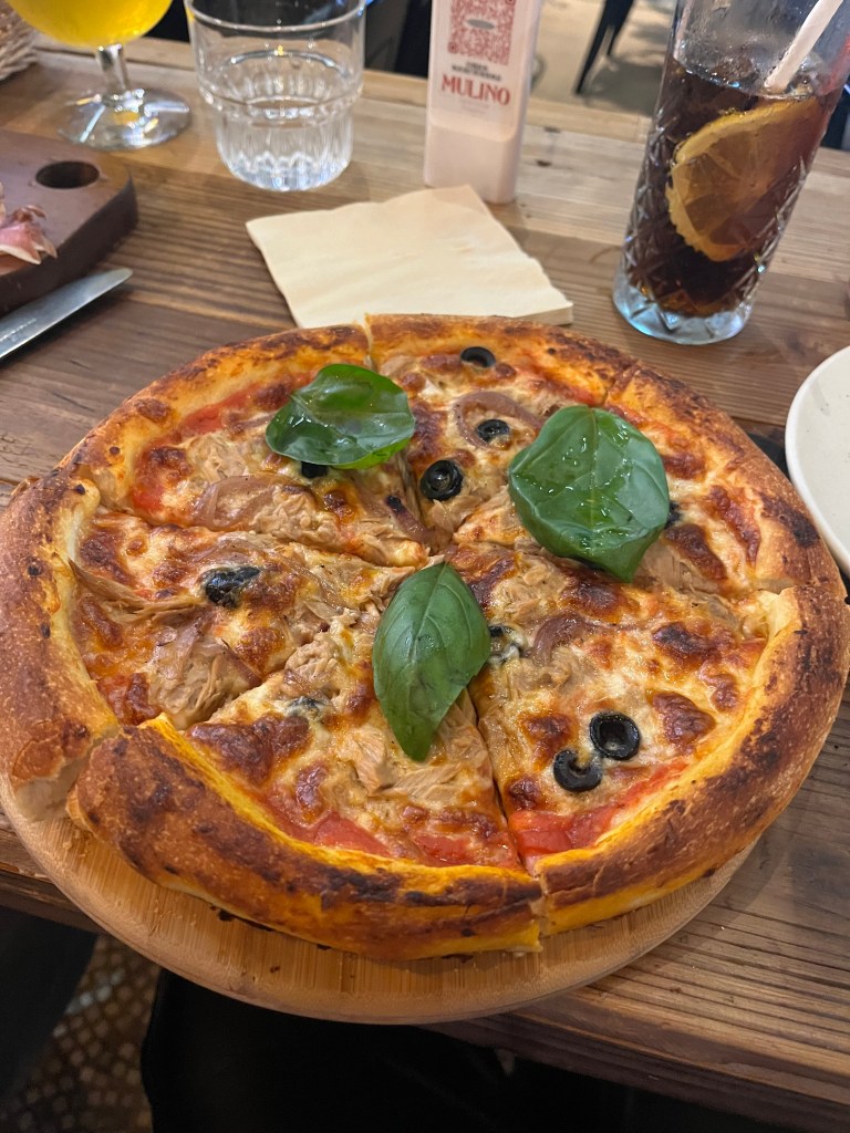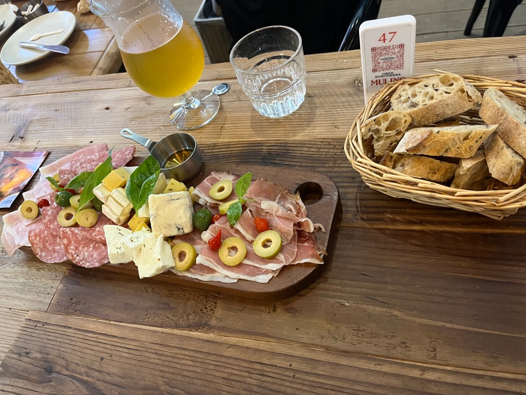 Tegen de avond was het tijd om met een collega van Guus, die voor kortere periodes in Hangzhou is, te gaan eten. Voor de eerste avond had vooral ik (Lieven) nog zin in iets vertrouwds, dus kozen we voor iets westers. Uiteindelijk belandden we bij een leuke Italiaan waar we onder andere een borrelplank en een lekkere pizza bestelden.